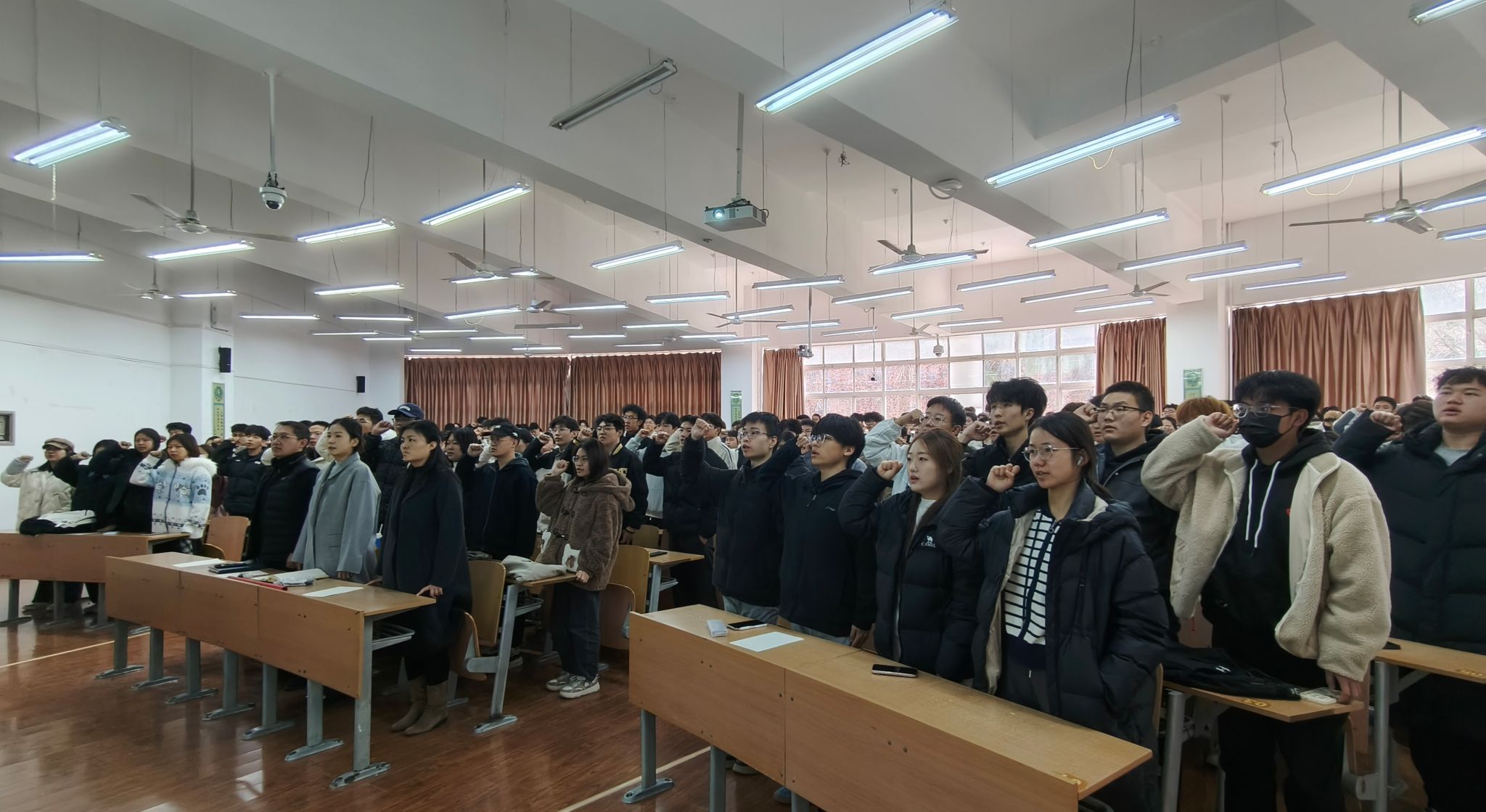 会议最后,全体参会成员起立,举起右拳进行诚信考试宣誓。针对考前复习压力较大的学生,辅导员们同步分享了科学复习规划与心理调节技巧,鼓励学生合理分配时间、高效备考,以平稳心态和饱满状态迎接考试检验。动员会结束后,全体学生有序参与诚信应考横幅签署,以落笔为诺的方式进一步固化诚信信念。