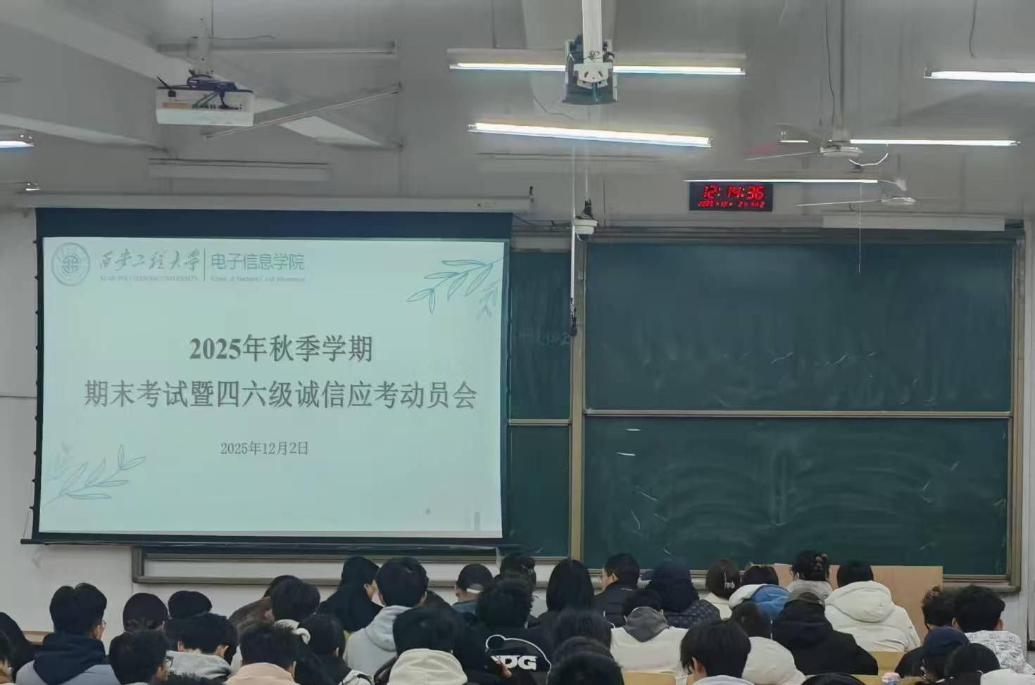 为进一步严肃考风考纪,强化学生诚信意识,12月2日,电子信息学院在教学楼B-133召开秋季学期期末考试暨四六级考试诚信考试动员会。学院党委副书记周晓惠、全体辅导员及班干部参会。