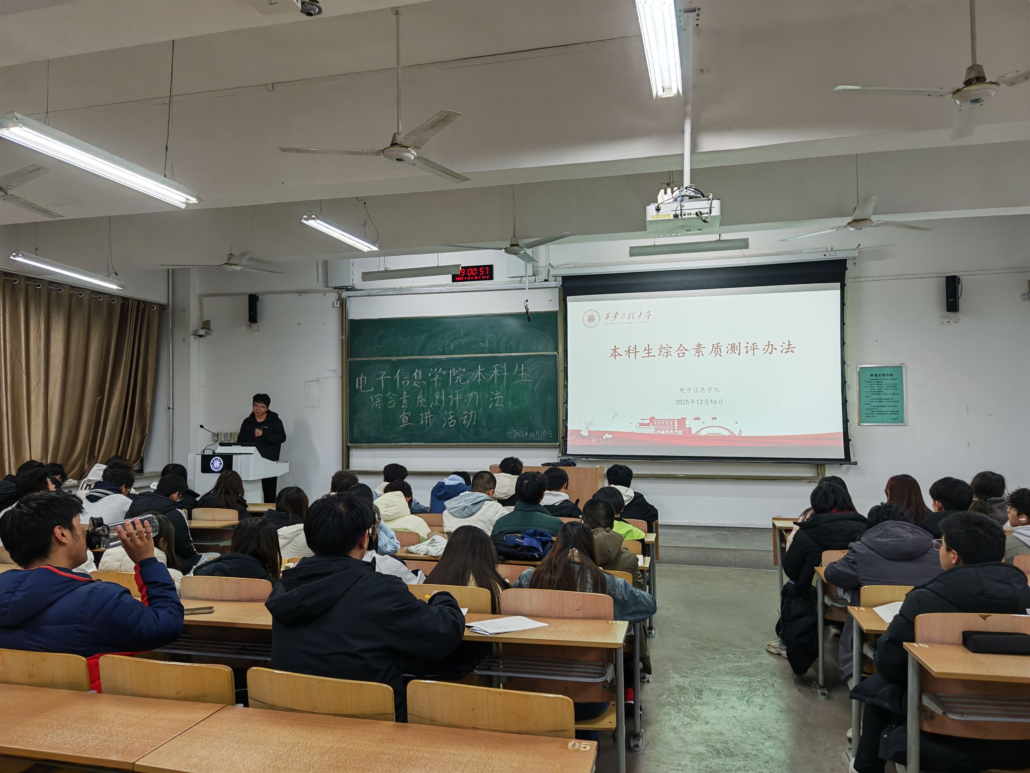 自12月4日以来,电子信息学院精心组织、创新形式,开展了一系列多层次、广覆盖的本科生综合素质测评办法宣传教育活动,为后续测评工作的公平、公正、有序开展奠定了坚实基础,为2025级新生科学规划大学生活提供遵循。