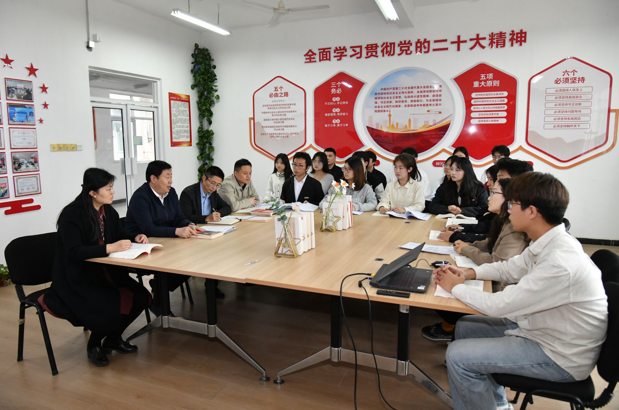 殷永建与在场师生共读《习近平与大学生朋友们》一书,并领学了《习近平同志给河北农大正定籍同学的信》。他结合自身读书经历寄语同学们要让读书成为习惯,每天坚持读一点,积少成多,让阅读融入生活日常;要通过读书打开格局,既要精读专业书籍,也要研读红色经典书籍,同时广泛涉猎历史、文学、哲学、科技等各领域知识,做到爱读书、读好书、善读书;让思考伴随成长,在读书中沉淀感悟、坚定信仰,在书香浸润中传承红色基因、砥砺奋进品格。
