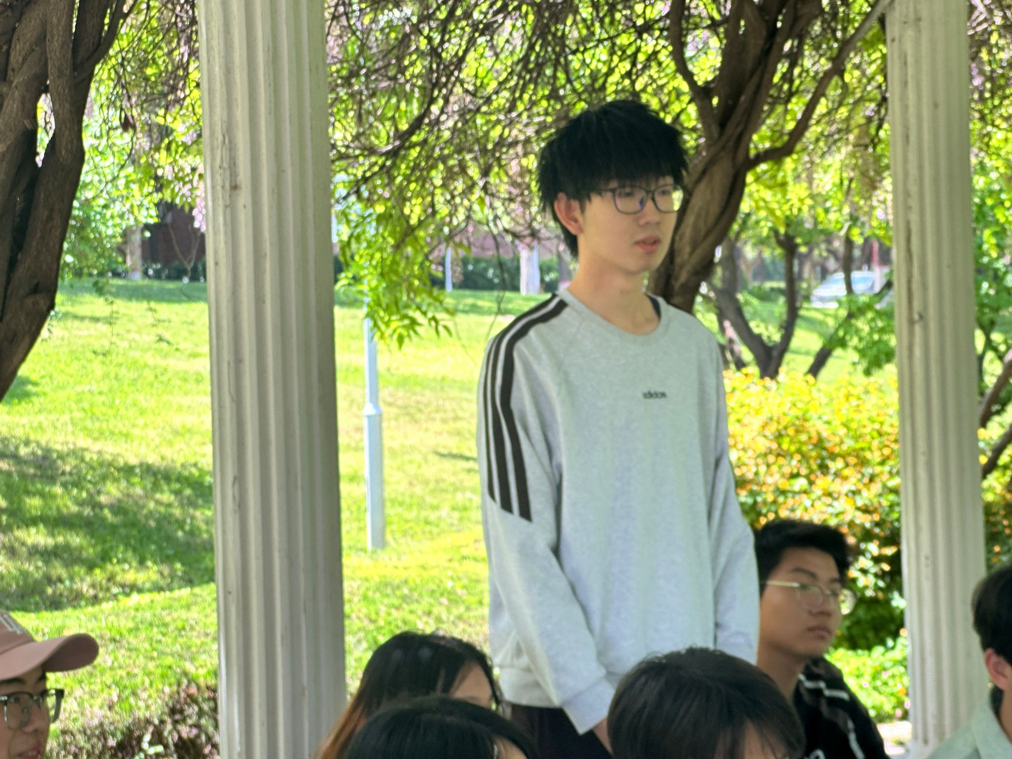 党支部书记、大学生党建工作室主持人刘风萍在总结讲话中指出,本次学习从“室内”延伸到“室外”,伴随着温柔的春风和清新的花香,在沉浸式赏析伟人毛泽东的诗作中学习党的历史、感悟共产党人的纯粹品质,以坚定共产主义信念。她强调,毛泽东诗词学习既是对伟人思想脉络的回顾,也是对中国共产党人精神谱系的感悟与传承。针对红色知识问答环节中暴露出的理论学习薄弱问题,她要求同学们要持续加强理论学习、筑牢思想根基,并勉励大家珍惜主题党日这一淬炼初心、同向同行的宝贵机会,积极参与、主动投身,以实际行动践行“一心向党”的坚定信念。(撰稿:刘风萍、赵梓彤;审稿:杨友谊)