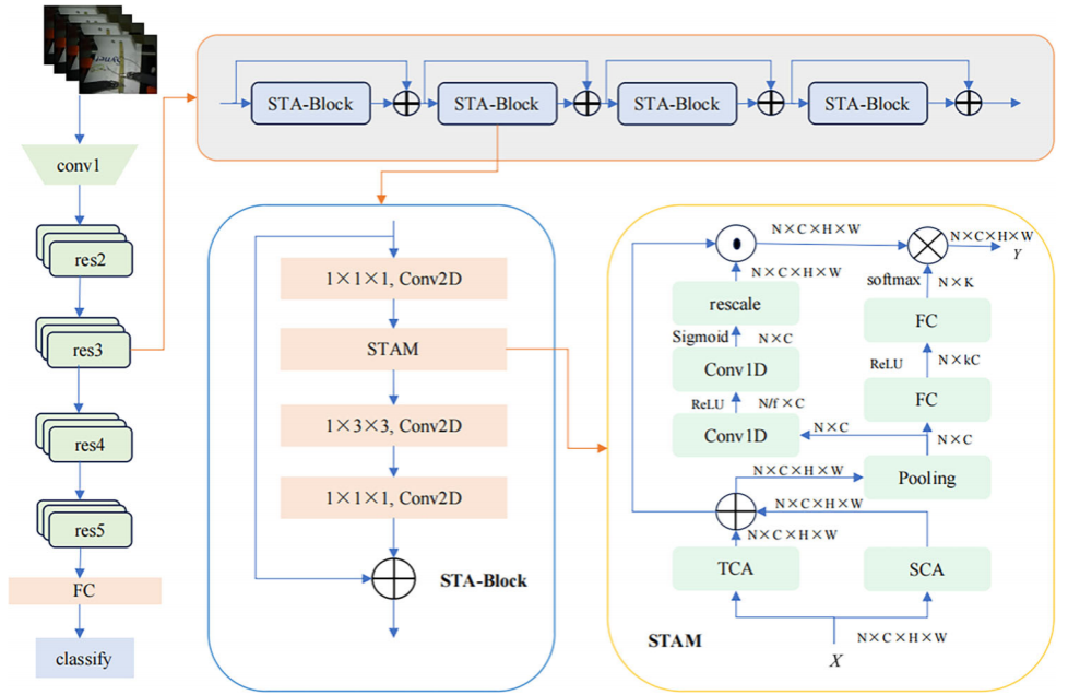 论文1“STANet: A Surgical Gesture Recognition Method Based on Spatiotemporal Fusion.”面向机器人手术中的手术动作(gesture)精准识别需求,提出时空自适应网络 STANet,将时间特征建模与空间表征学习协同融合,并通过时间自适应卷积进一步强化对动作序列长短期依赖的刻画,从而提升复杂手术动作序列的时序建模与识别效果。该方法在公开数据集 JIGSAWS 与 RARP-45 上验证有效,可为手术质量评估、智能辅助识别及视觉反馈系统提供关键算法支撑。